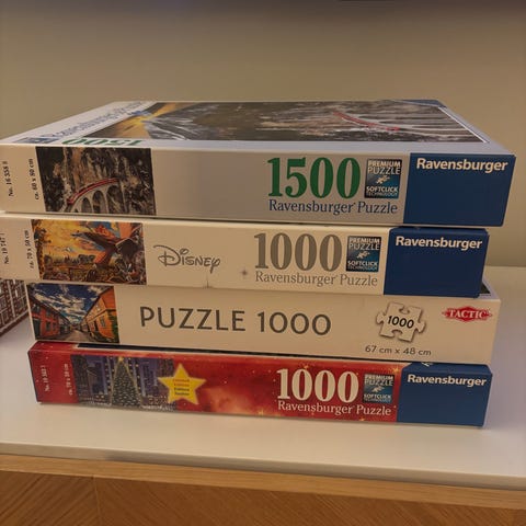 Alle har jeg lagt 1 gang bortsett fra det nederst til høyre med gul eske - den er uåpnet.
