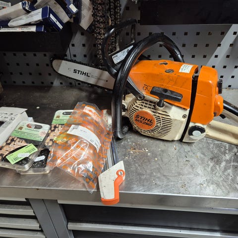 Stihl MS 211 C som er i god stand, starter lett og har ErgoStart på den.
