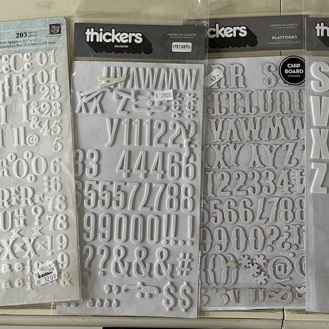17 mer eller mindre 3 åpnede pakker med alfabet/tall/tegn rub-ons -mye igjen