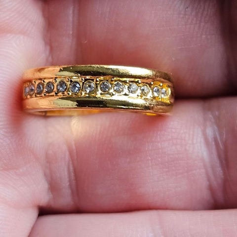 Ring fra gullsmed gullbelagt hvor sten på topp kan skrus av og byttes