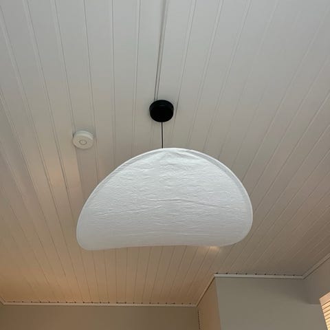 Hengt i taket ca 1år, byttes ut da den ble for stor over spisebordet. Som ny.
