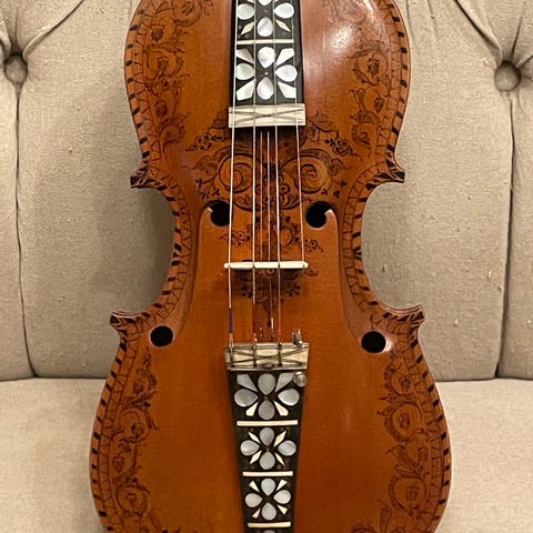 Noe utfordrende å tolke etiketten inni og hvem som faktisk har bygget fela