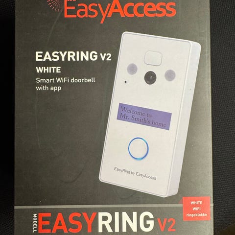 WIFI Ring Video Doorbell dørklokke med innebygd kamera i svart farge. Enhet for overvåking og kommunikasjon ved inngangsdør, med video- og lydfunksjon.