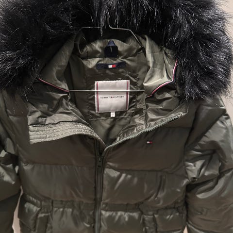 Kjempevarmt Tommy Hilfiger dunjakke i blå farge, størrelse 152/158, med avtagbar hette .