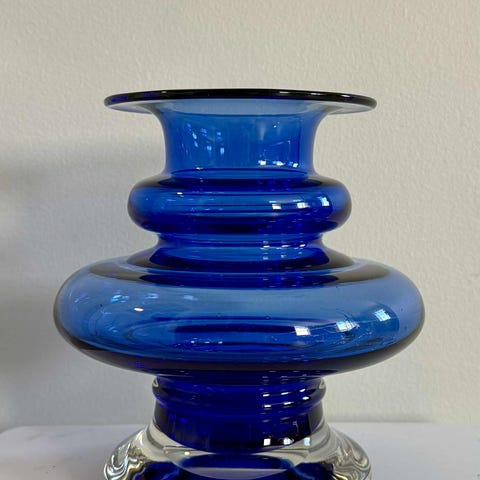 Minner litt om Willy Johanssons design for Hadeland Glassverk. Minner også om Studio Åhus Purple Glass Vase eller Riihimäen Lasi design av Tamara Aladin fra Finland.