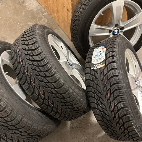 Bmw felger r18 fra x5 e53 med bra piggfrie vinterdekk.