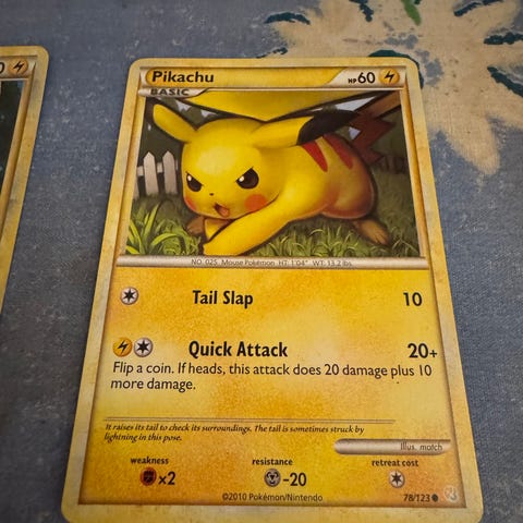 Pokémon Eevee samlekort med illustrasjon av Eevee. Kortet viser egenskaper som Smash Kick (10 skade) og Tail Whap (20 skade). Kortet har 50 HP og er en Basic type.