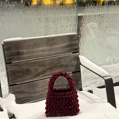 Håndstrikket veske med popcorn-mønster (kan lages på bestilling)🖤