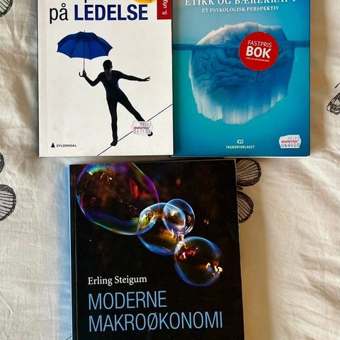 Selger bøker for Siviløkonomi og økonomi og administrasjon for BI.