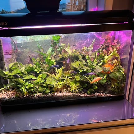 Følger med varmekolbe, pumpe, 8 Neon tetra og 1 stk Gyppi.