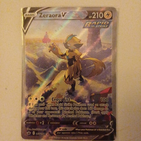 Pokémon Reshiram V samlekort med 230 HP. Kortet er en del av Pokémon Trading Card Game og har illustrasjoner av Pokémon-karakteren Reshiram. Kortet er i plastbeskyttelse og ble puttet i det rett etter den ble åpnet fra pakken
