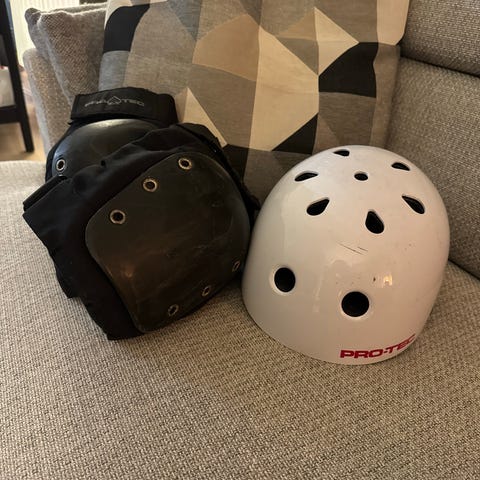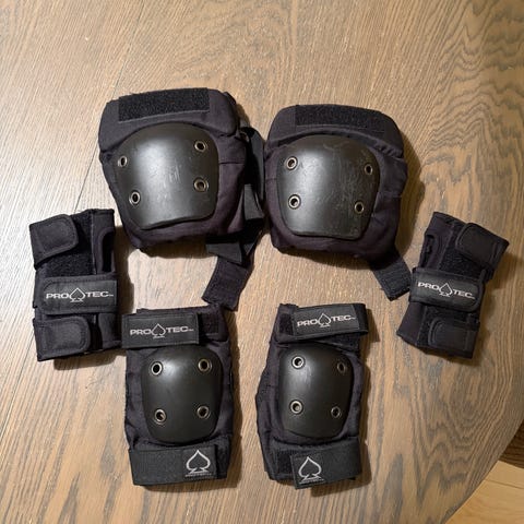 Selger to par ubrukte knebeskyttere av type Pro-Tec Street Knee pads i størrelsene small og medium, som var de beste i markedet da de ble kjøpt for tre-fire år siden.