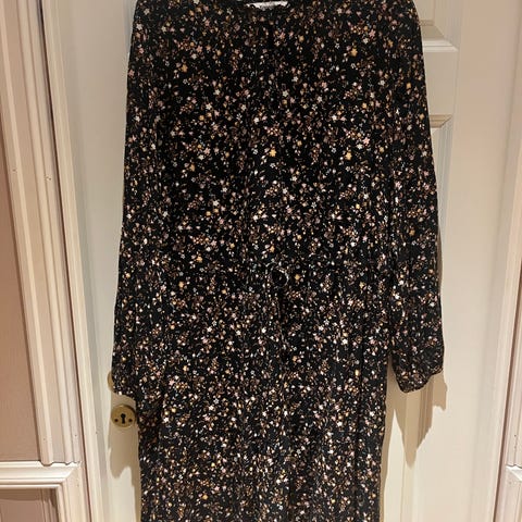 Ellos lang sommerkjole i flerfarget mønster, laget av polyester. Kjolen er elastisk med knytebånd fra sidene og bak. Størrelsen på kjolen er 50/52, er lett justerbar med å knyte båndene bak eller frem. Passer en 46 og oppover.