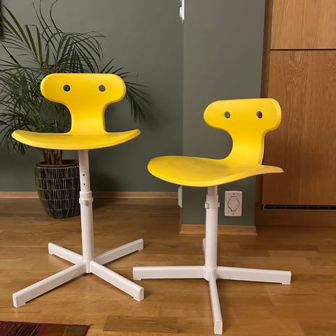 To stykk trestoler fra IKEA selges samlet grunnet flytting. Stolputer kan følge med om ønskelig. Den ene stolen har noen små merker i ryggen, men ellers er disse i god stand.