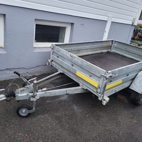 Liten bilhenger med høge karmer