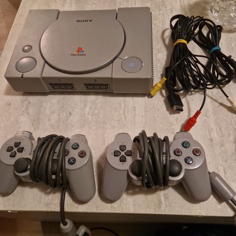 Sony PlayStation 2 spillkonsoll med kontrollere og spill
