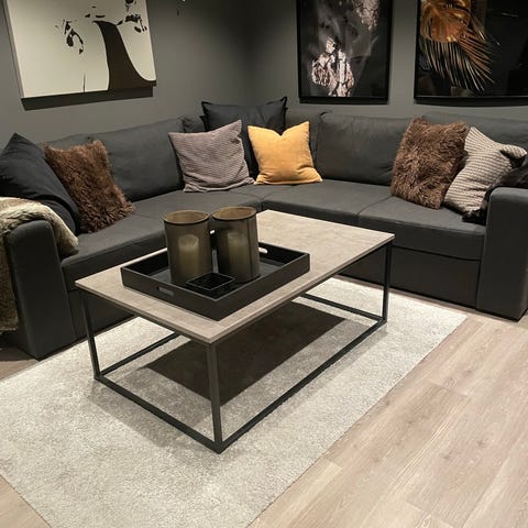 Brukt metallbord, svart plate og svarte føtter. Selges kr 700