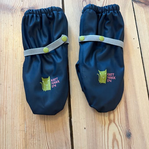 Selger et par med regnvotter fra Kattnakken i str 3-4 år. Regnvottene er lite og pent brukt. Minimal misfarging på den ene votten. Utover dette har de ingen slitasje. Selges for 200 kr.