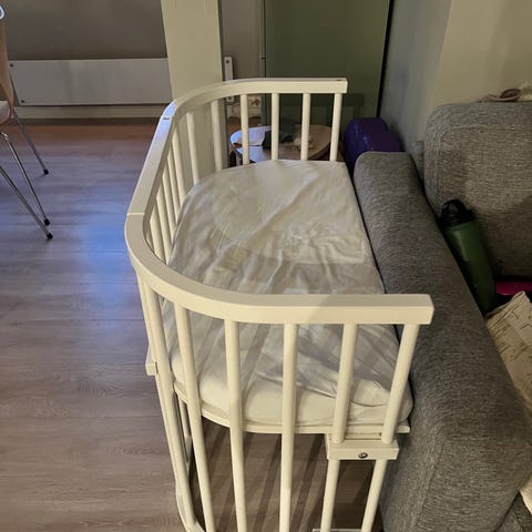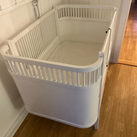 Pent brukt, ingen skader. Funker som den skal - super praktisk ved at man kan heve og senke den i ulike høyder, og fungerer også bra som reise seng