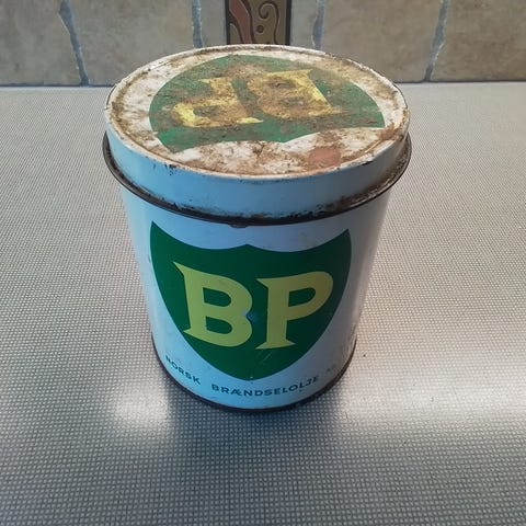 Oljekanne i blikk . Har brukslitasje, men allikevel masse sjarm igjen i denne lille kanna. Selges 300kr + frakt.