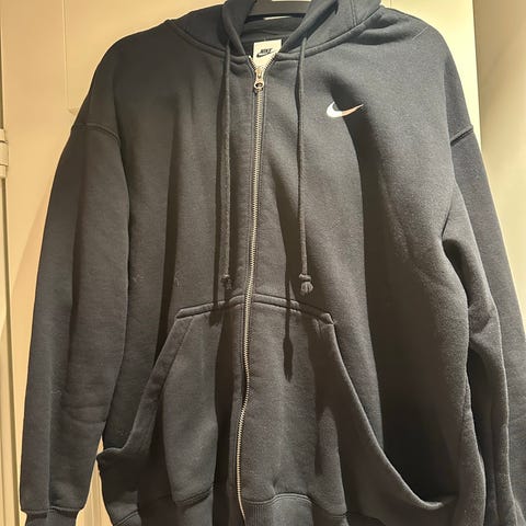 Nike hettejakke i størrelse S for herre. Jakken har glidelås foran, hette og frontlommer. Fargen er grå, og den er designet for komfort og hverdagsbruk.