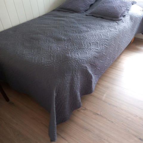 Sengetøy krepp, hvitt og blått