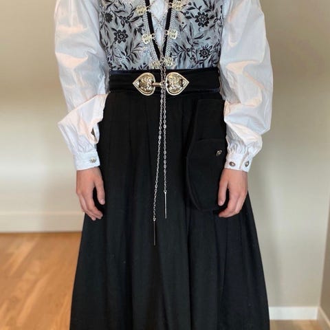 Selger min Tora festdrakt, kun brukt noen få ganger. Den er i størrelse 34, men kan også passe en 36.