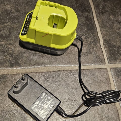 Veldig lite brukt Ryobi 18 V lader med 4,0 Ah batteri.