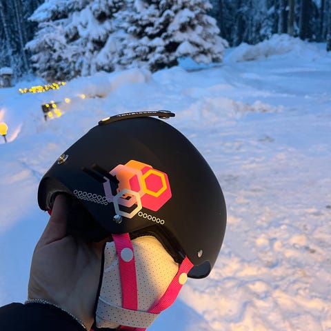 Rosa hjelm fra Sweet Protection, str S/M (53/56). Selges billig siden det dessverre mangler en spenne under haken, men sikkert lett å fikse 😊 Kjøpt ny og brukt av én jente.