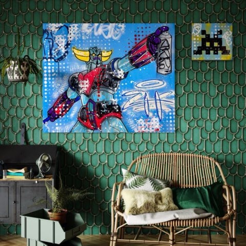Naturlandskap - "vannliljedammen" 80×80 cm. Malt i akryl med abstrakt bakgrunn og mer detaljert forgrunn.