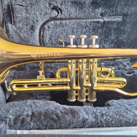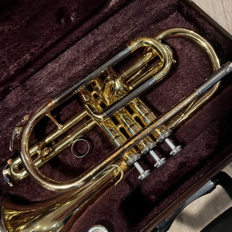 Godt brukt kornett, som har ligget ubrukt i ca 10 år selges. Det er noen bulker på den.