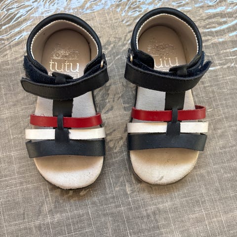 Sandaler str 24 brukt 1 sommersesong og 1 uke i syden. Man ser dem er brukt, men det er mye bruk igjen.