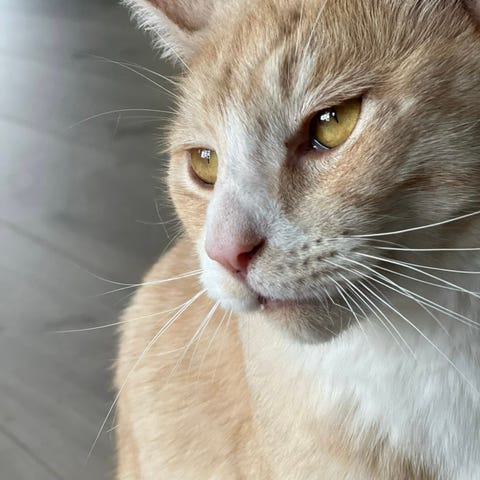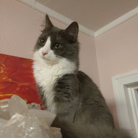 Theodor er en utrolig kosete og sosial katt som elsker nærhet, oppmerksomhet og å være der du er. Han trives aller best tett inntil, og vil passe perfekt hos noen som ønsker en katt som virkelig søker kontakt og kjærlighet.
