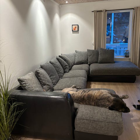 Godt brukt hjørnesofa. Det er skader etter katt. Må hentes. Lett å bære.