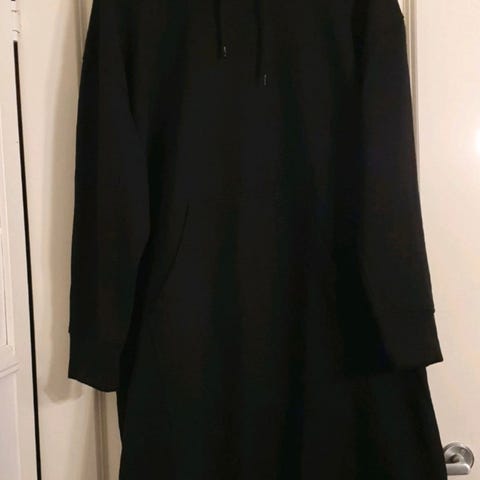 Hettegenser kjole med børstet innside. Lite og pent brukt, mindre i størrelsen. Hetten er dobbel/foret. Lomme midt fremme som skjoler godt for oss som har mage :)