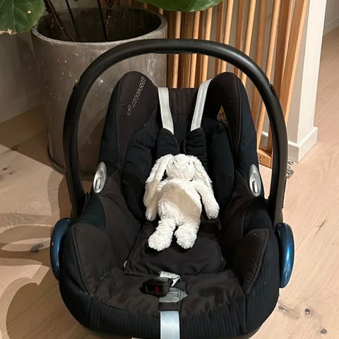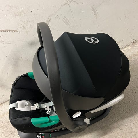 Selger et CYBEX Aton M i-Size bilsete til baby, inkludert tilhørende isofix-base. Setet passer for spedbarn opptil 13 kg og er kjent for høy sikkerhet, god komfort og enkel montering.