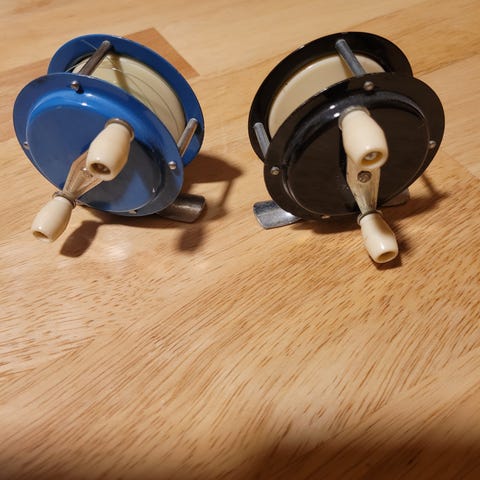 Lukket haspel snelle - eldre Abu Garcia Abumatic. Lett og kompakt design - godt egnet for barn med korte stenger.