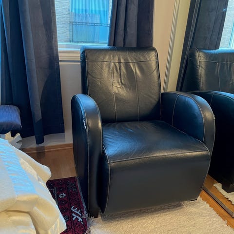 6 stoler. En helt uten skade, flere har mer skade