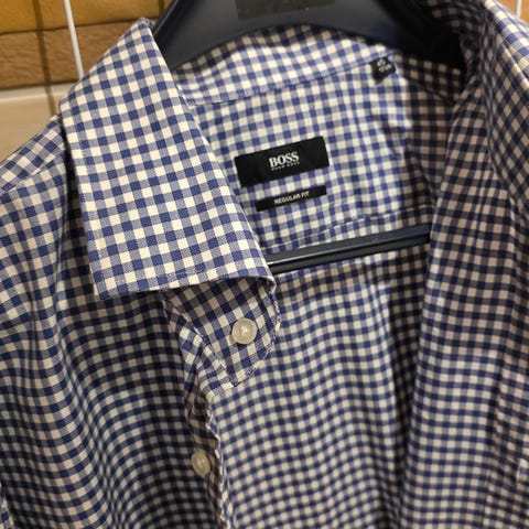 Veldig fin Hugo Boss-skjorte i størrelse 41, slim fit. Lite brukt og i svært god stand.