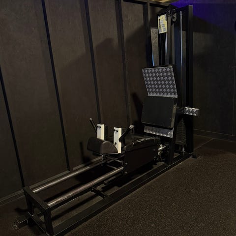 Treningsbenk med polstret sete og ryggstøtte i beige farge. Benken har justerbar ryggstøtte som kan tilpasses ulike treningsposisjoner. Passer til styrketrening og generell trening.