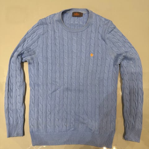 Litt kortere enn de andre Morris genserne jeg har i Small. Se siste bilde der den ligger oppå en lyseblå Morris Small