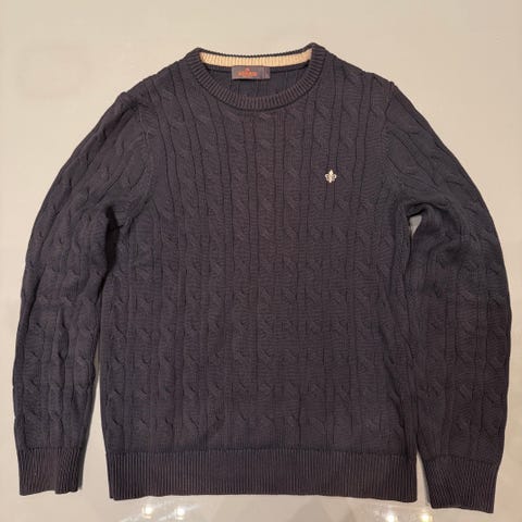Morris merinoull Cable knit str S mørk blå