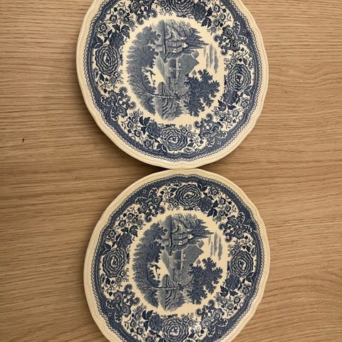 Håndmalte middagstallerkner med gullkant