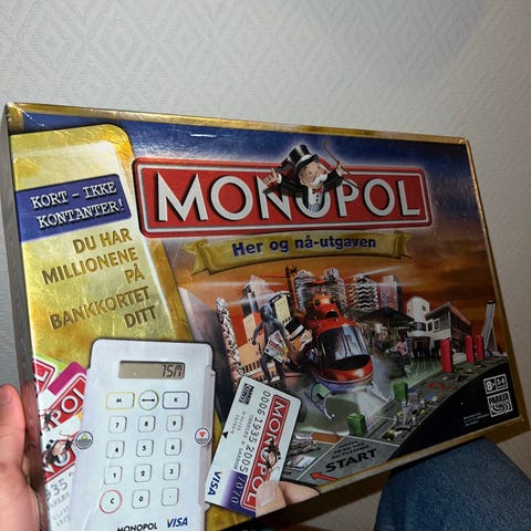 Denne ser litt slitt ut på utsiden og esken liksom, men som du kan se er den HELT ubrukt på innsiden. Har aldri vært i bruk så både penger, kort og brikker er i helt perfekt stand.