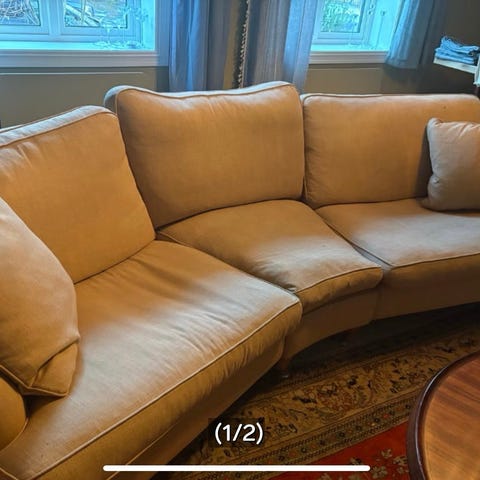 Sofa gis bort mot henting. Sofaen er brukt og har noen bruksmerker, men ser fin ut