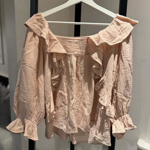 Helt ny bikinitopp med armer og snøring. Siden det er snøring, er den fleksibel i størrelse (M). Lekkert print. Padding i brystene som kan tas ut. Lapp er på. Fra sommerkolleksjonen 2025.