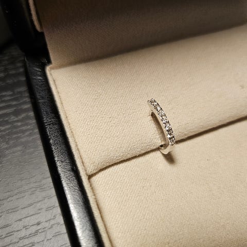 Elegante øreringer i hvitt gull med 0,50 carat diamanter fattet rundt halve creolen.