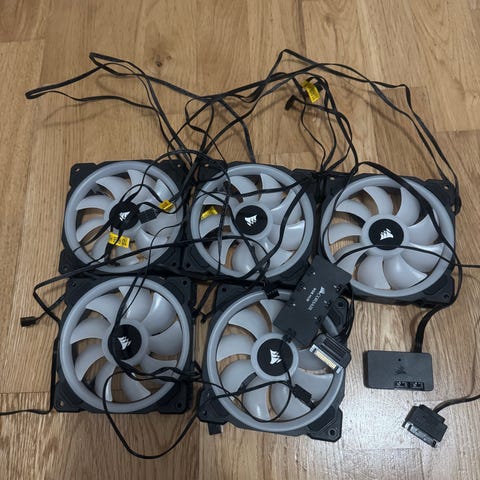 3stk corsair QL120 dobbel side rgb perfekt for montering på bunnen av kabinett. Lighting Node CORE kontroller medfølger.