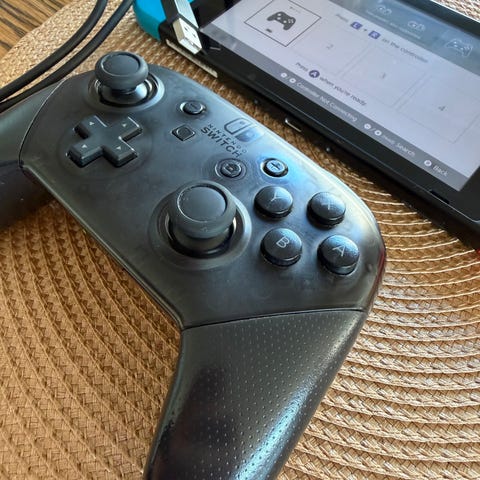 Nintendo Pro Controller spillkontroller i svart farge. Kontrolleren har en ledning for tilkobling. Egnet for bruk med Nintendo spillkonsoller, kompatibel med Switch 1, Lite, Oled og Switch 2.