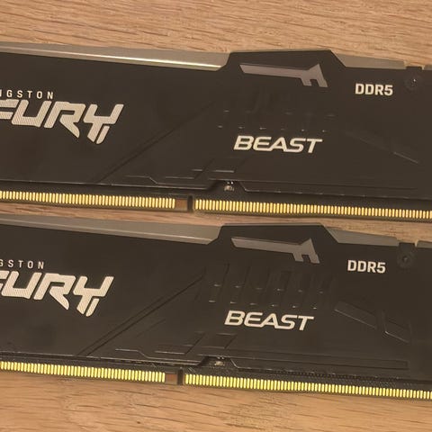 Selger 16GB med lynrask Kingston DDR5 RAM da jeg har oppgradert til mer minne. Brikkene er pent brukt og har fungert helt utmerket siden dag en.